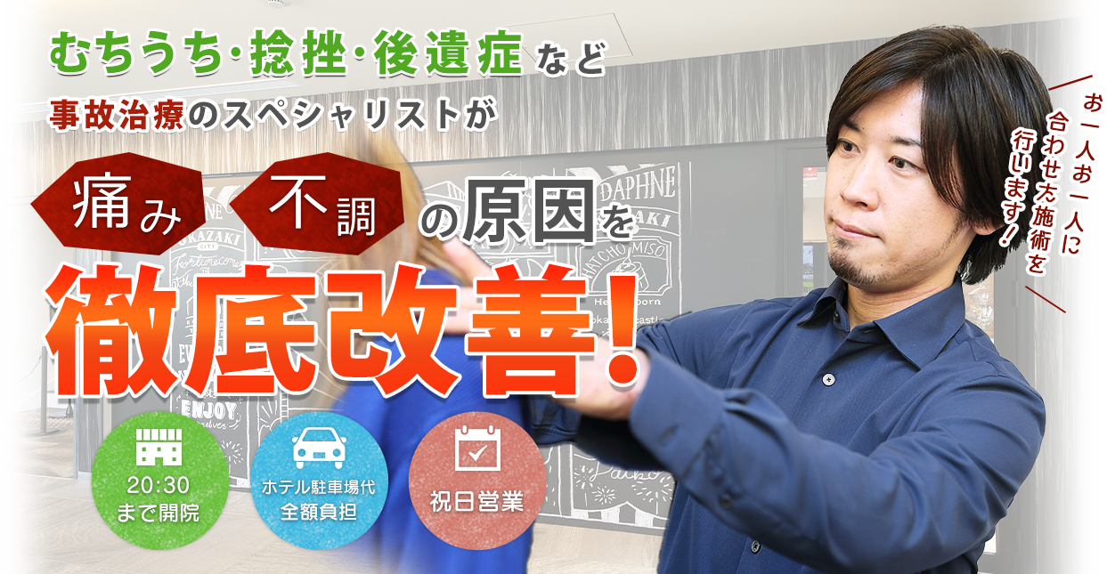 事故の後遺症でお困りなら、当院へお任せください!