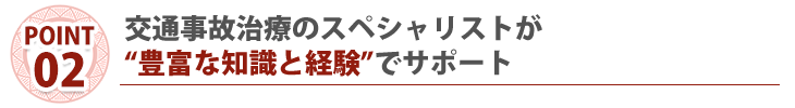 当院は、交通事故治療認定院です。交通事故治療はもちろん、保険対応もしっかりと学んだスペシャリストが豊富な知識であなたをしっかりサポートいたします。