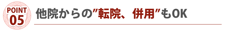 また、病気や整形外科との併用通院も可能ですのでご相談ください。